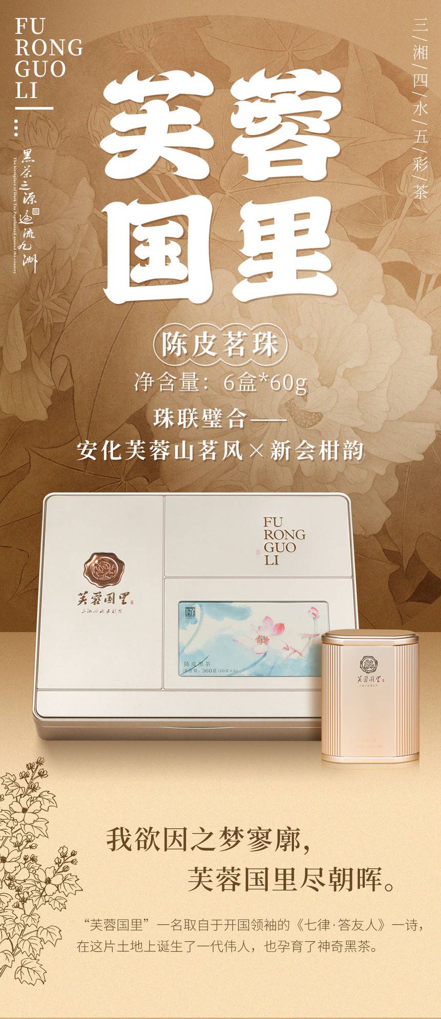 白沙溪安化黑茶湖南正品芙蓉國里正宗新會(huì)陳皮茗珠黑茶360g禮盒裝[支持定制]