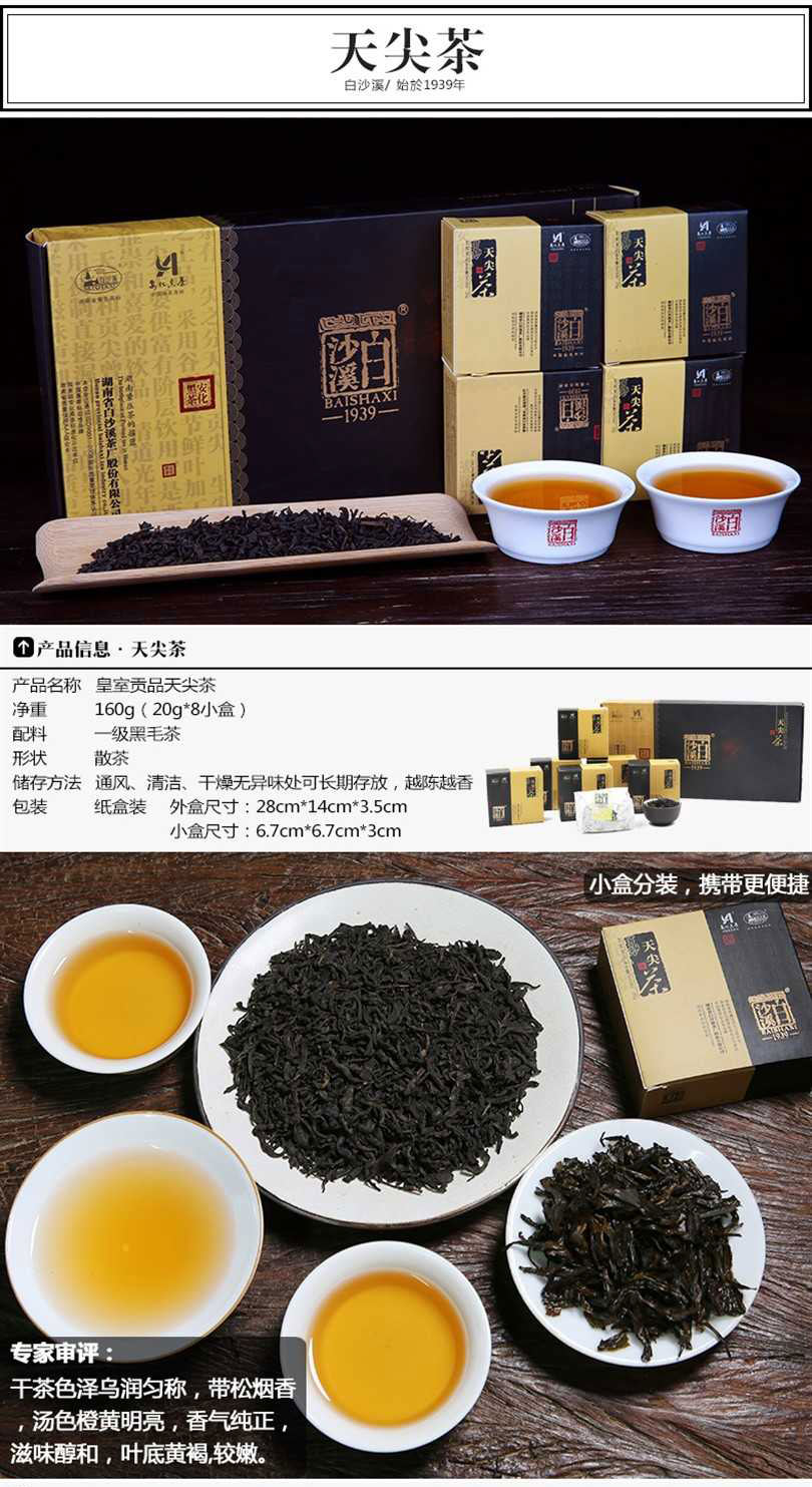 • 湖南安化黑茶正品白沙溪芽料散茶直泡天尖茶160g