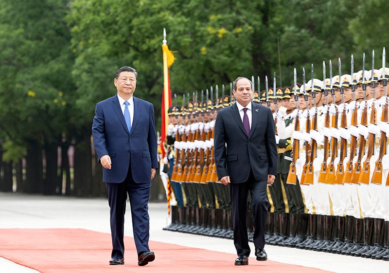 5月29日下午,國家主席習(xí)近平在北京人民大會堂同來華出席中國-阿拉伯國家合作論壇第十屆部長級會議開幕式并進(jìn)行國事訪問的埃及總統(tǒng)塞西舉行會談。這是會談前,習(xí)近平在人民大會堂東門外廣場為塞西舉行歡迎儀式。新華社記者 翟健嵐 攝