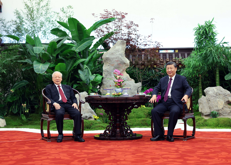 習(xí)近平指出,中越是山水相連、唇齒相依的好鄰居、好朋友,是志同道合、命運(yùn)與共的好同志、好伙伴,是致力于人類(lèi)和平與進(jìn)步事業(yè)的命運(yùn)共同體。在兩國(guó)推進(jìn)社會(huì)主義現(xiàn)代化建設(shè)征程上,中國(guó)共產(chǎn)黨愿同以阮富仲總書(shū)記為首的越南共產(chǎn)黨一道,傳承好毛澤東、胡志明等兩黨兩國(guó)老一輩領(lǐng)導(dǎo)人親手締造和精心培育的傳統(tǒng)友誼,共同引領(lǐng)中越關(guān)系取得更大發(fā)展。