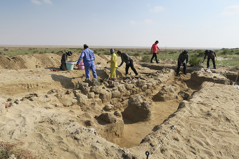 2019年1月12日,中沙考古隊(duì)員在沙特塞林港遺址現(xiàn)場(chǎng)工作。新華社發(fā)(王霽 攝)