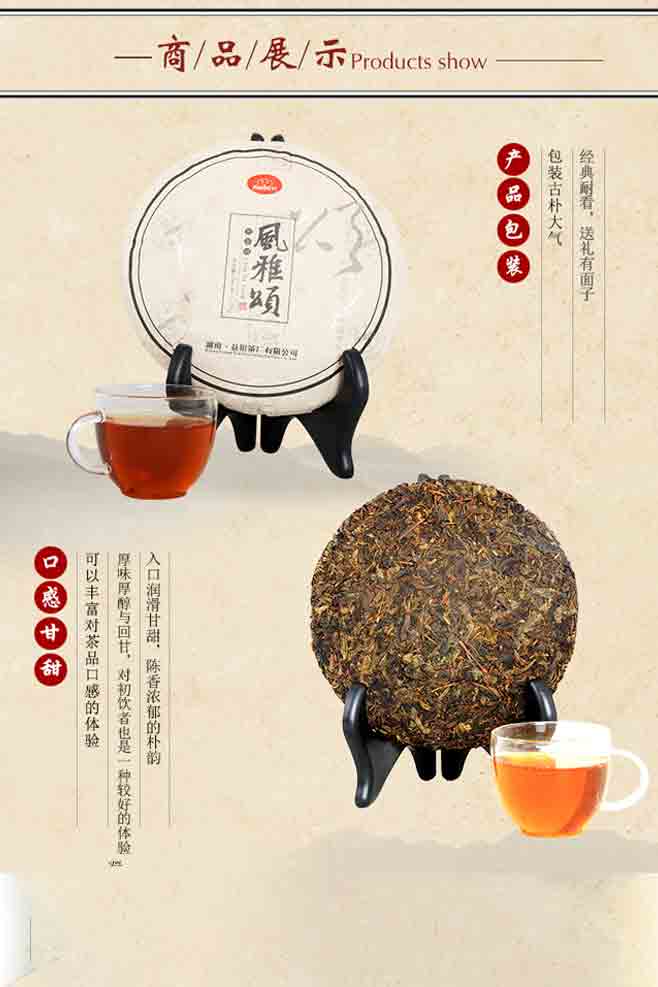益陽(yáng)茶廠是全國(guó)茯磚茶生產(chǎn)廠家和茯磚茶原料儲(chǔ)備承儲(chǔ)企業(yè),創(chuàng)建于1953年,“湘益”素有“古絲綢之路上的神秘之茶”、“西北少數(shù)民族的生命之茶”的美譽(yù),其“茯磚茶手筑工藝”已被列入國(guó)家級(jí)非物質(zhì)文化遺產(chǎn)保護(hù)名錄。 ??“湘益”茯茶均采用優(yōu)質(zhì)黑毛茶為原料,經(jīng)篩分投入拼配篩制—汽蒸渥堆—壓制定型—發(fā)花—干燥出烘—包裝入庫(kù)等工序精制而成,茶葉金花普茂,湯色紅濃,滋味醇厚,具有明顯的調(diào)節(jié)新陳代謝、降脂降糖功效。