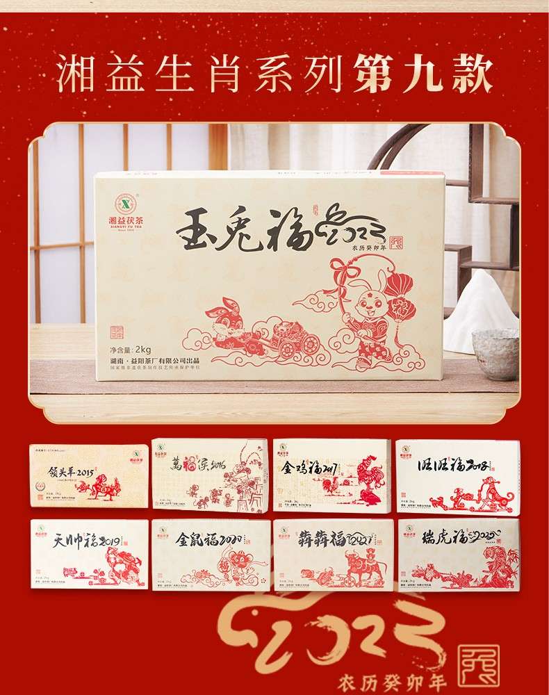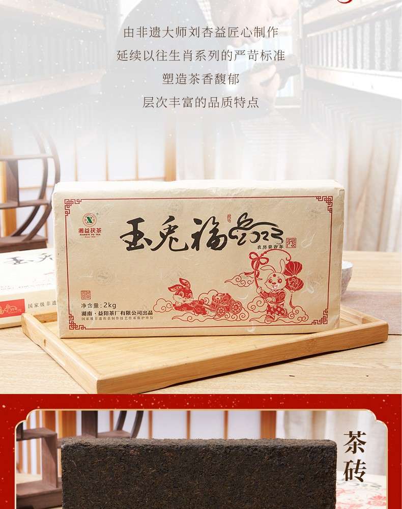湘益獲茶2023年兔年生肖紀念茶玉免福2kg湖南正宗安化黑茶獲磚茶